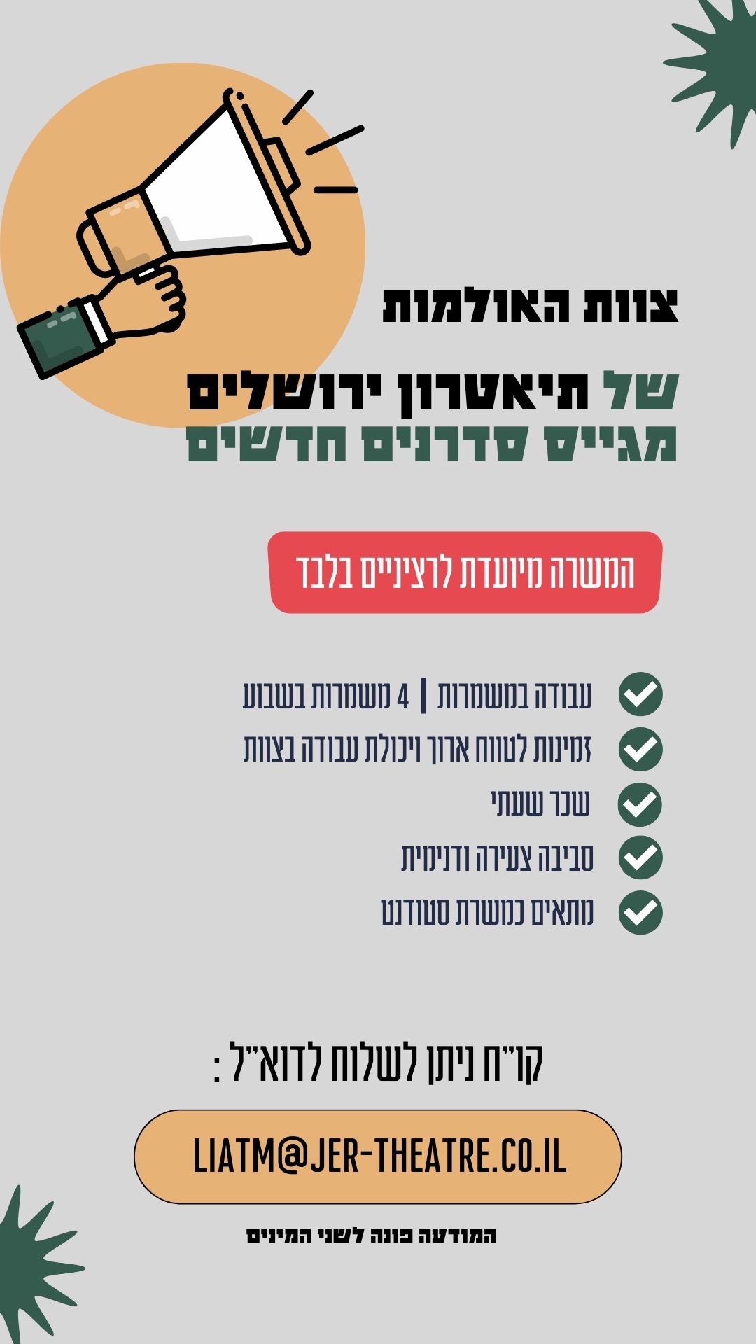 דרושים/ות נציגים/ות למוקד השירות והמכירה של תיאטרון ירושלים