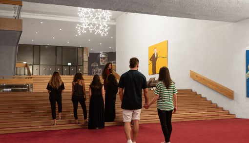 The different foyers have capacities ranging from several tens to up to 1,000 (in the grand foyer). There is a system for messages in the foyers that are suitable for speeches and background music for receptions.